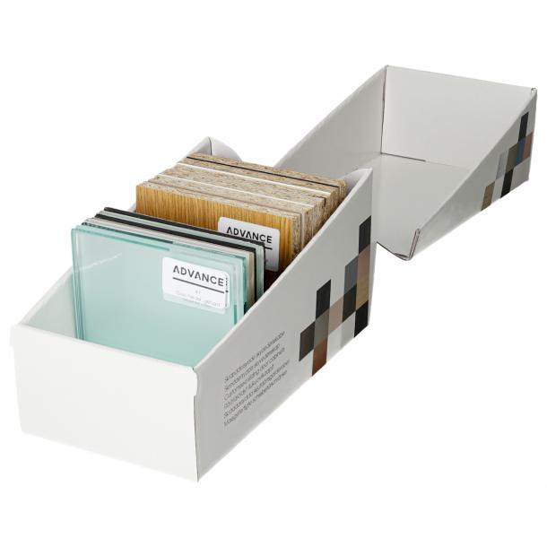 Door filling samples for the made to measure assortment, size 8x8cm.
